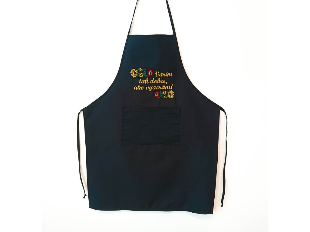 Vyšívaná zástera čierna ,,Varím tak dobre" ZLATÁ EDÍCIA