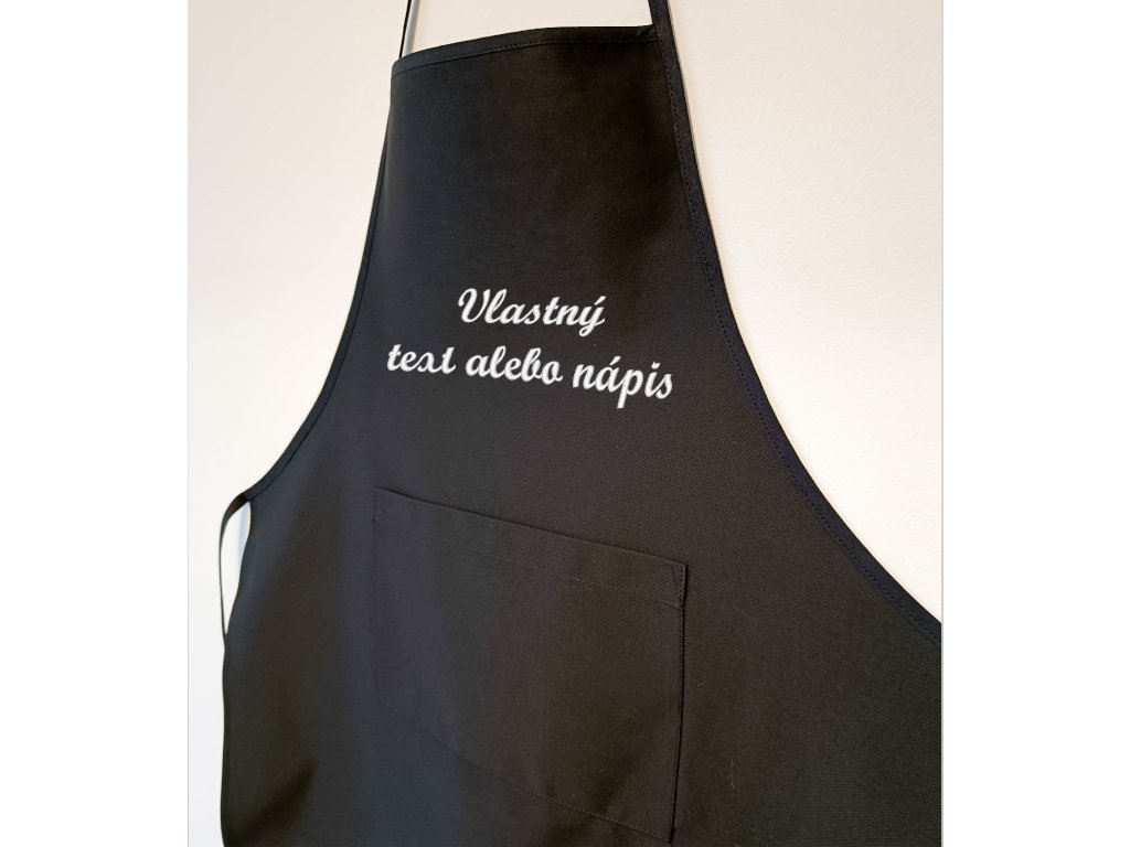 Vyšívaná zástera čierna VLASTNÝ TEXT