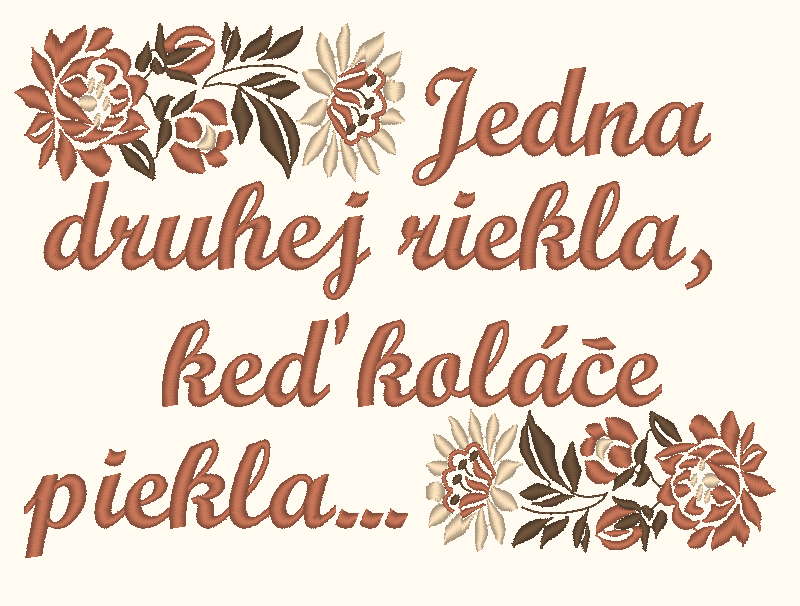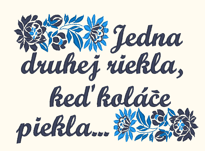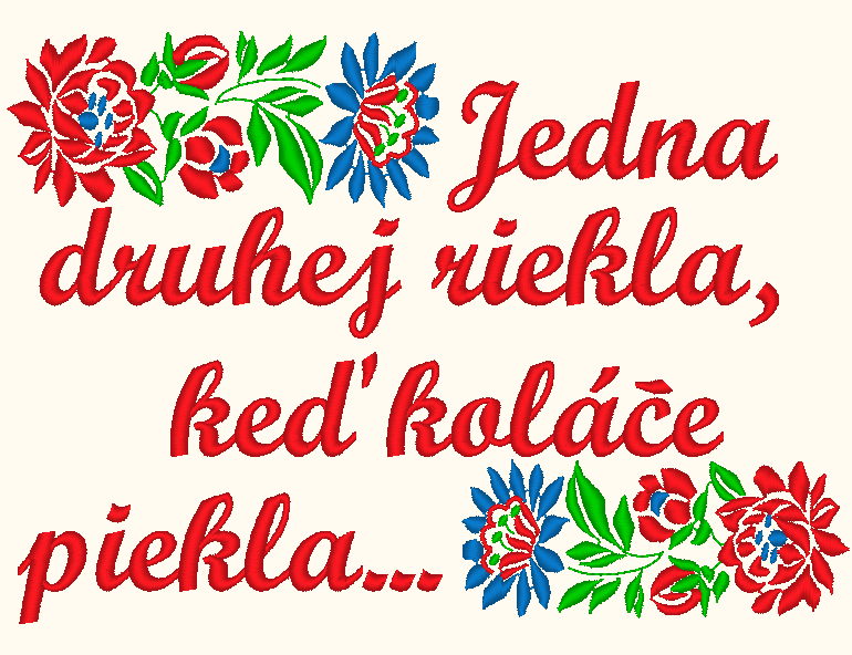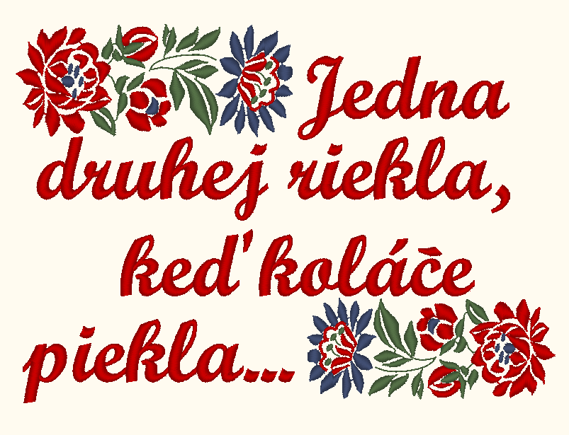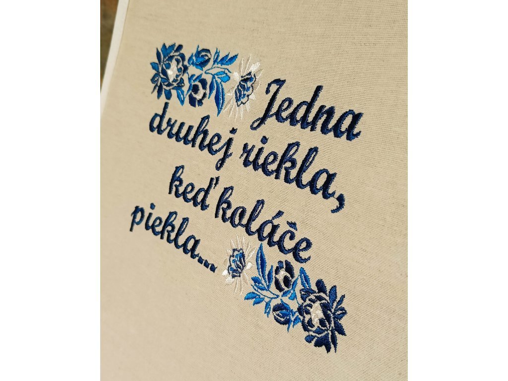 Zástera s teflónovou úpravou, s VÝŠIVKOU folklórneho motívu, doplnená o text pesničky Jedna druhej riekla... a s možnosťou pridať vlastné meno alebo text.