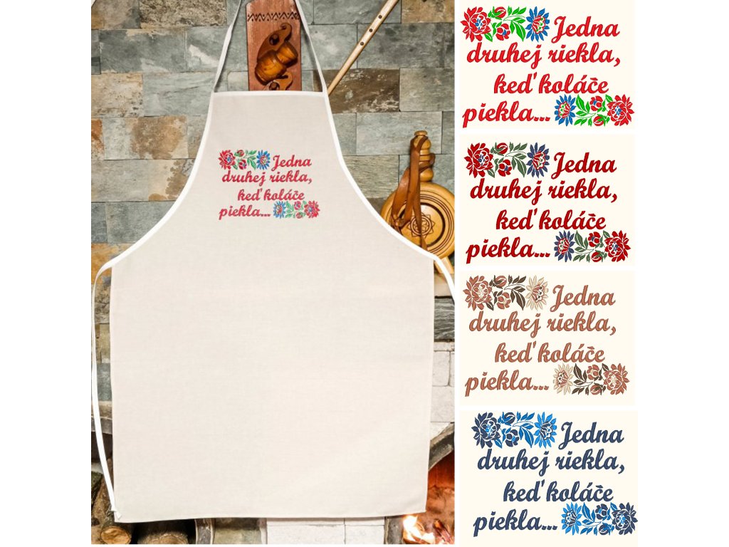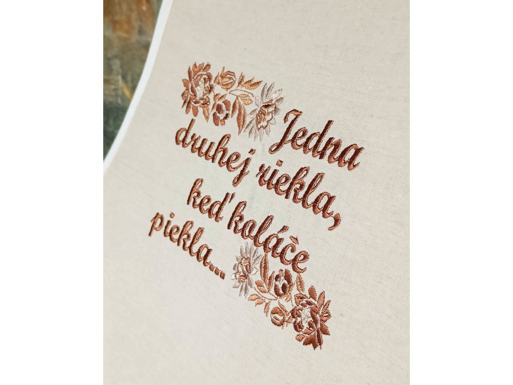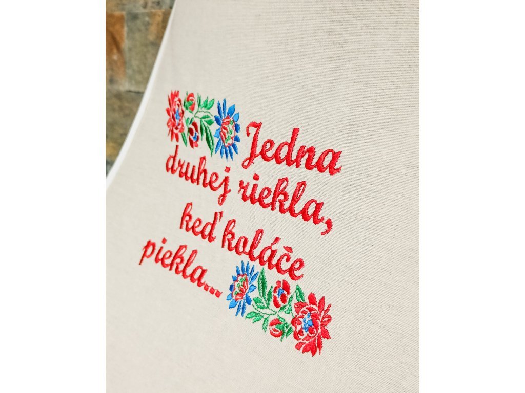 Vyšívaná zástera s teflónovou úpravou ,,Jedna druhej riekla"