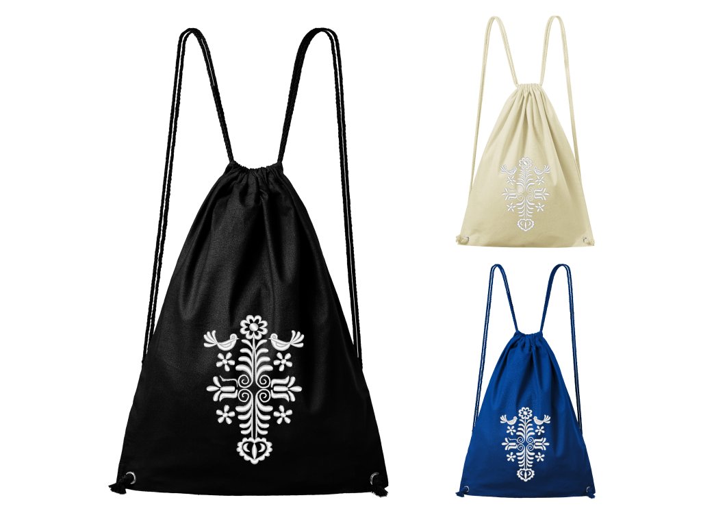 Vyšívaný batoh s vreckom vzor Adam biely - výber farby batoha