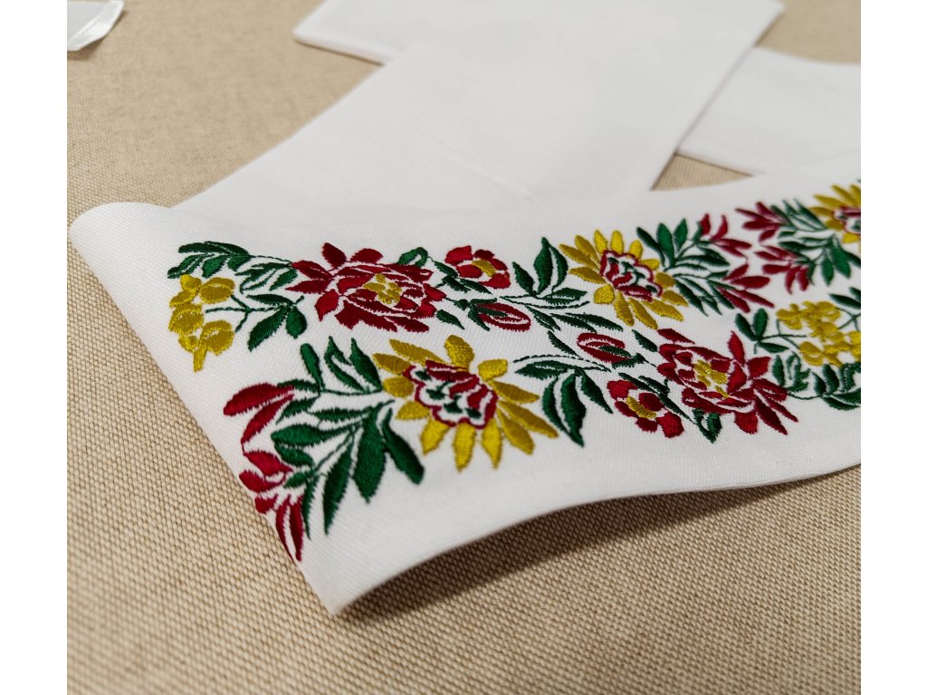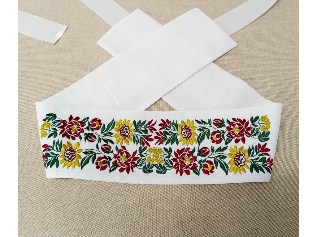 VYŠÍVANÉDámsky opasok biely s folklórnou výšivkou vzor Kristián, výšivka je inšpirovaná slovenským folklórom. Výšivka je kombinovaná zo zlatej, bordovej a tmavozelenej farby