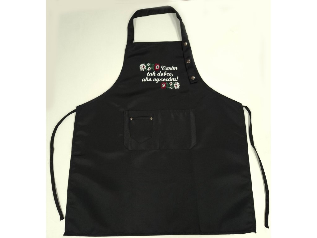 Zástera doplnená o precíznu výšivku s nápisom je vyrobená z pevného plátna. Vďaka svojmu dizajnu ju využijú dámy aj páni. Má praktické vrecká , okolo krku je popruh s tromi patentami .
